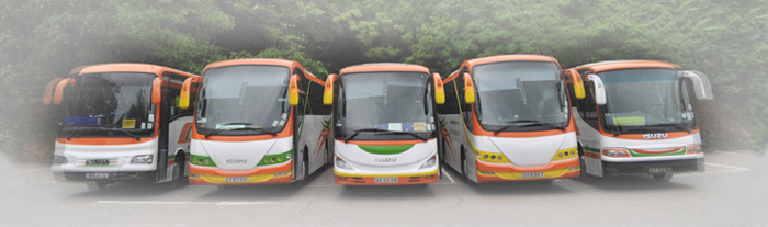 本公司車隊包括:豪華冷氣旅遊巴士24至61座位,亦有豪華8座位私家車。另外近年購入多部全新歐盟4型旅遊巴士,為客户提供豪華舒適旅程,設備包括特大行李廂、24吋顯示屏、DVD音響連咪、行李架、全車真皮坐椅連舒適頭枕,以上設備均免費使用(需訂車時註明)。客戶可以提供乘撘旅遊巴之人數,本公司可以為您們選擇最合適之車種類形,從而免卻租貴車的情況(提供即時報價,